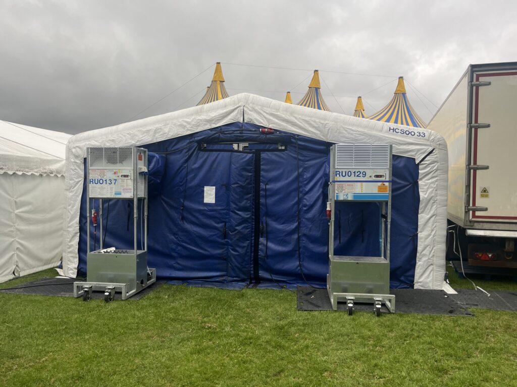 The weather wasn’t the only problem Mack Events encountered this year. Their Big Top tent was an extra 15m longer and 13m wider than the one used last year. This major orientation change moved the bar to be perpendicular to the tent, requiring flexible cold storage to maintain their refreshments.